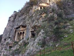 Amintas Örenyeri, Muğla’nın Fethiye ilçesinde bulunur ve bir grup kaya mezarından oluşur. Dik bir kayalık yamacın cephesine oyularak yapılmış çok sayıdaki kaya mezarı arasında üçü tapınak tipindedir. |
